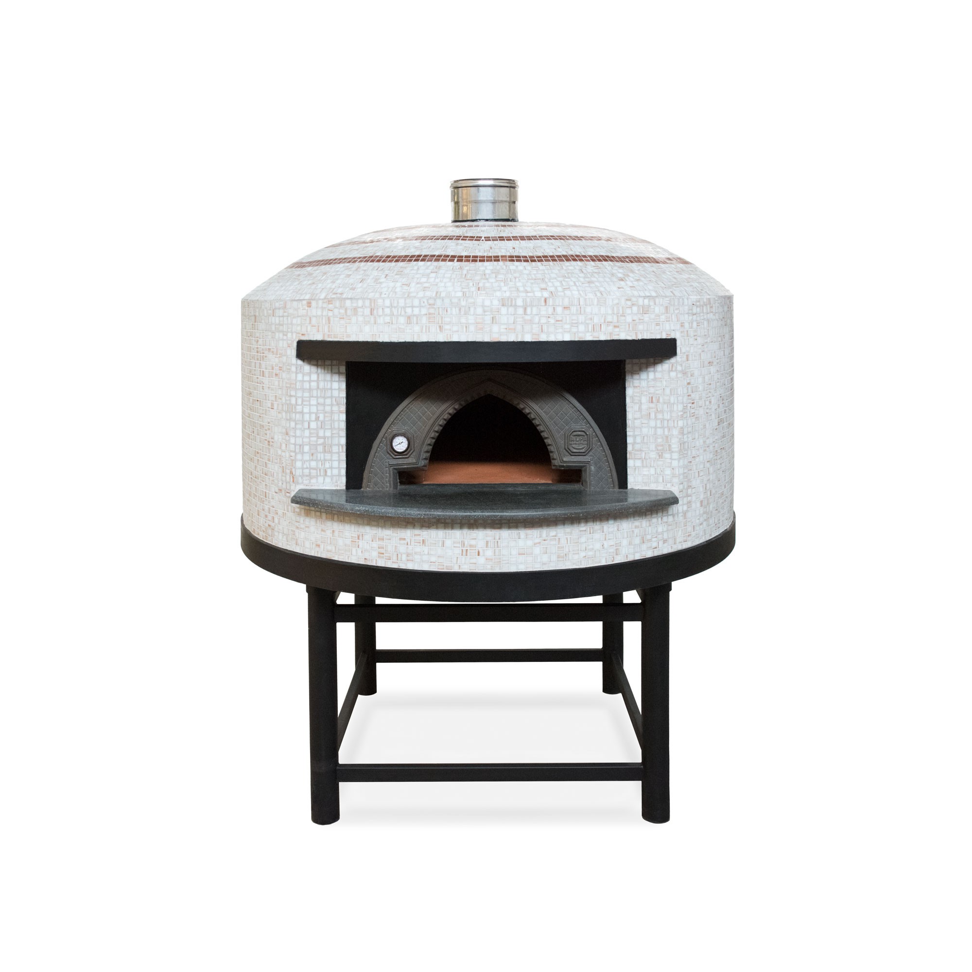 Tato ručně vyráběná profesionální pec byla navržena a vyrobena s použitím šamotových cihel "cotto", které vyrábí společnost Alfa ve své peci v Anagni nedaleko Říma.