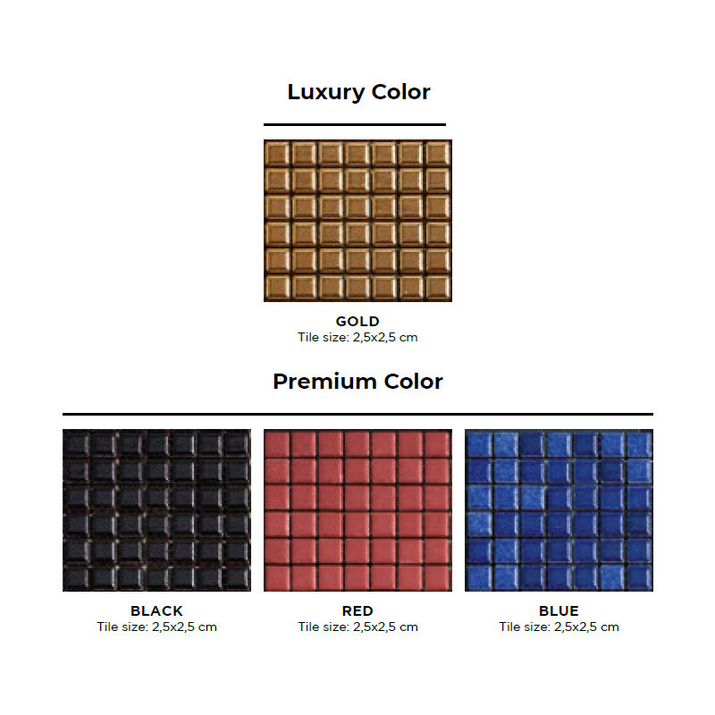 Napoli se dodává v široké škále přizpůsobitelných mozaikových vzorů a barev, případně bez mozaiky pro případ zabudování.